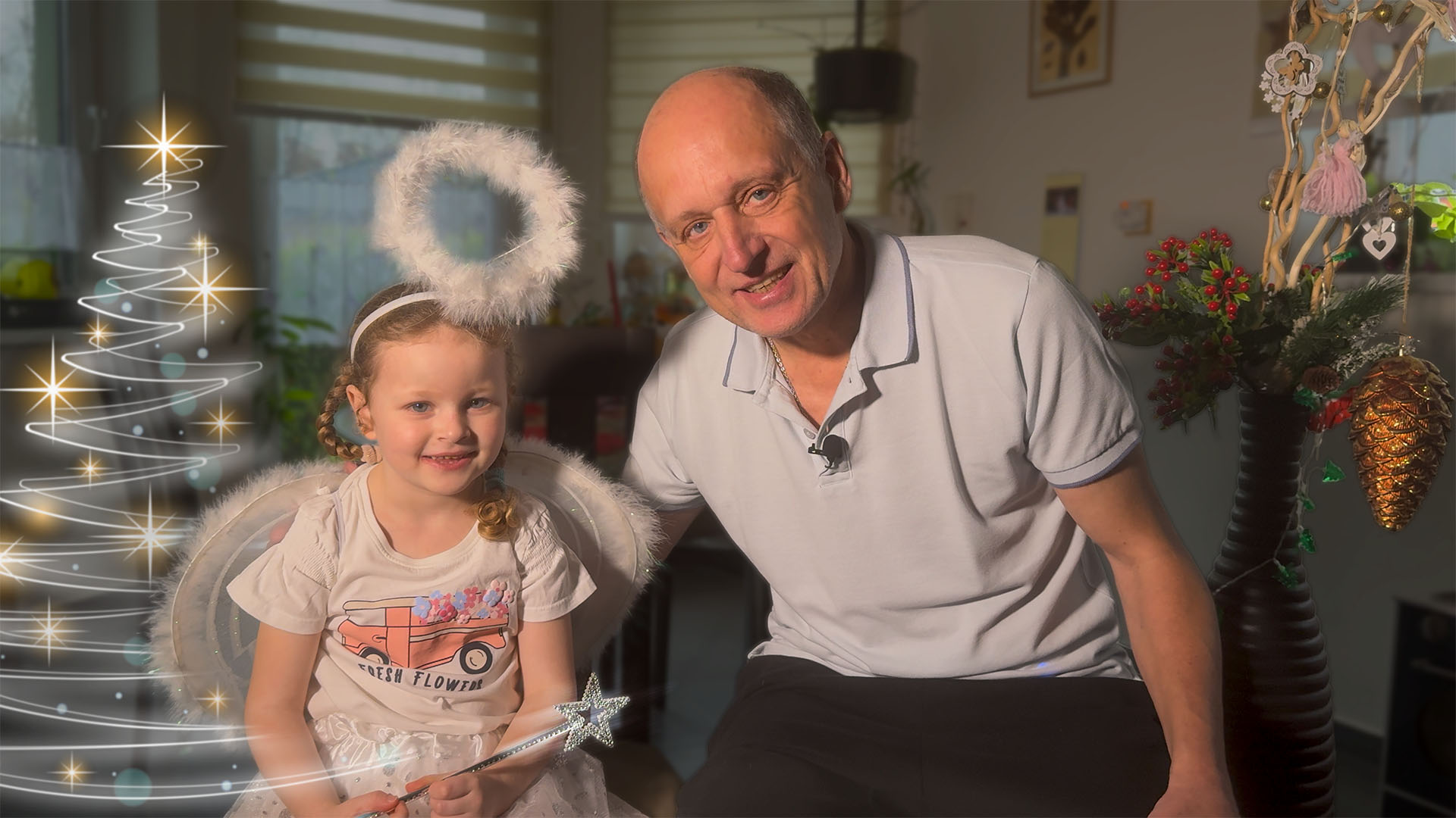 Věřím, že máme všichni vedle sebe i kolem sebe strážné anděly. Nebo alespoň jednoho, který nás provází naším životem. A jednoho takového strážného anděla mám tady vedle sebe. A společně bychom vám chtěli popřát hezké Vánoce, hodně štěstí a zdraví do nového roku. Tak hezké Vánoce!